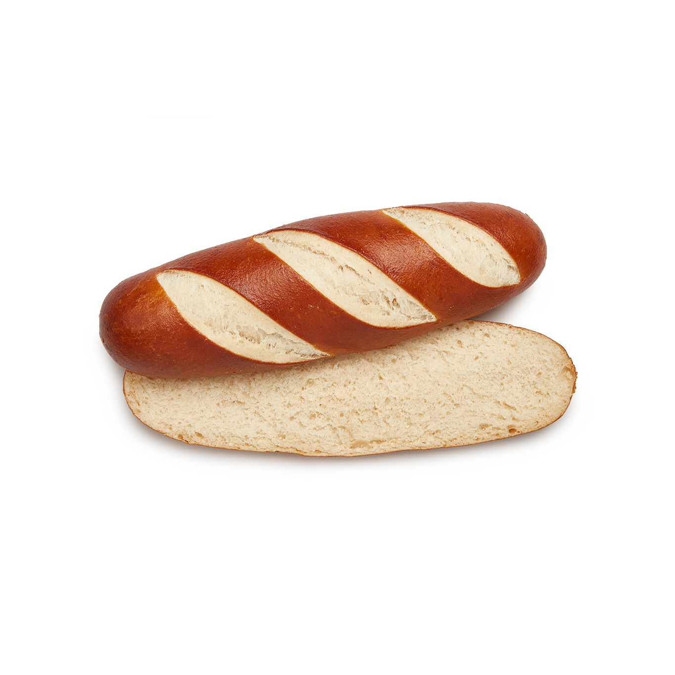 Descubra o nosso novo pão de cachorro pretzel, com uma crosta de sabor salgado e miolo macio.